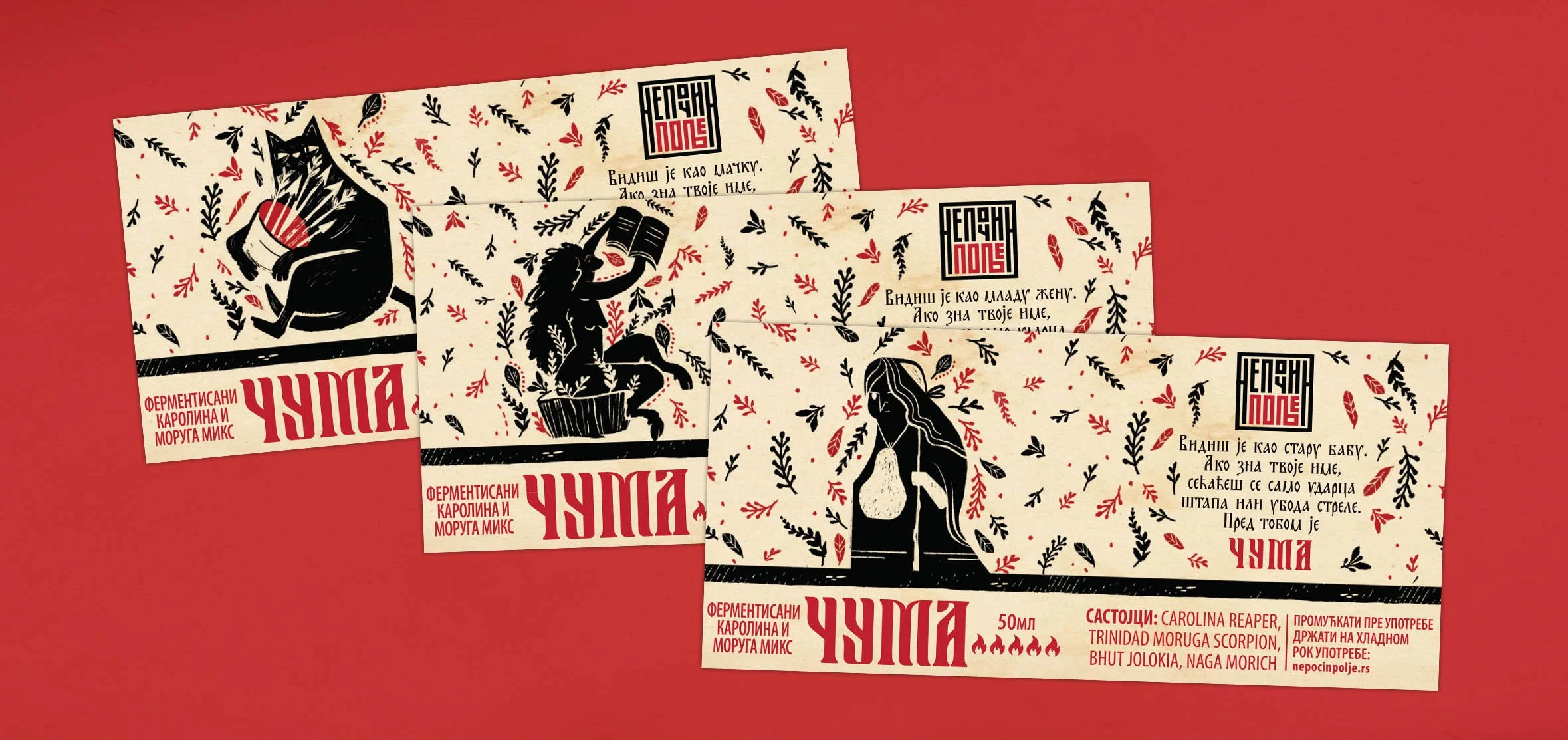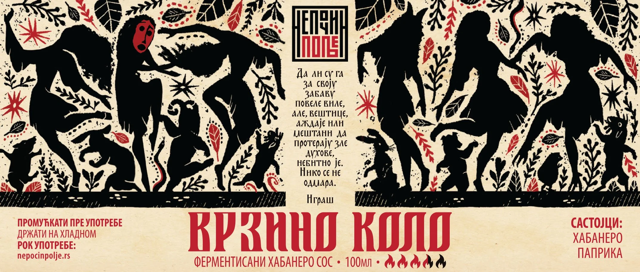 Nepocin Polje Hot Sauce collection combines the essence of Serbian tradition, folklore, and flavor. Drawing inspiration from traditional Serbian folk art and storytelling, the design of these sauces reflects the cultural heritage and mythology.