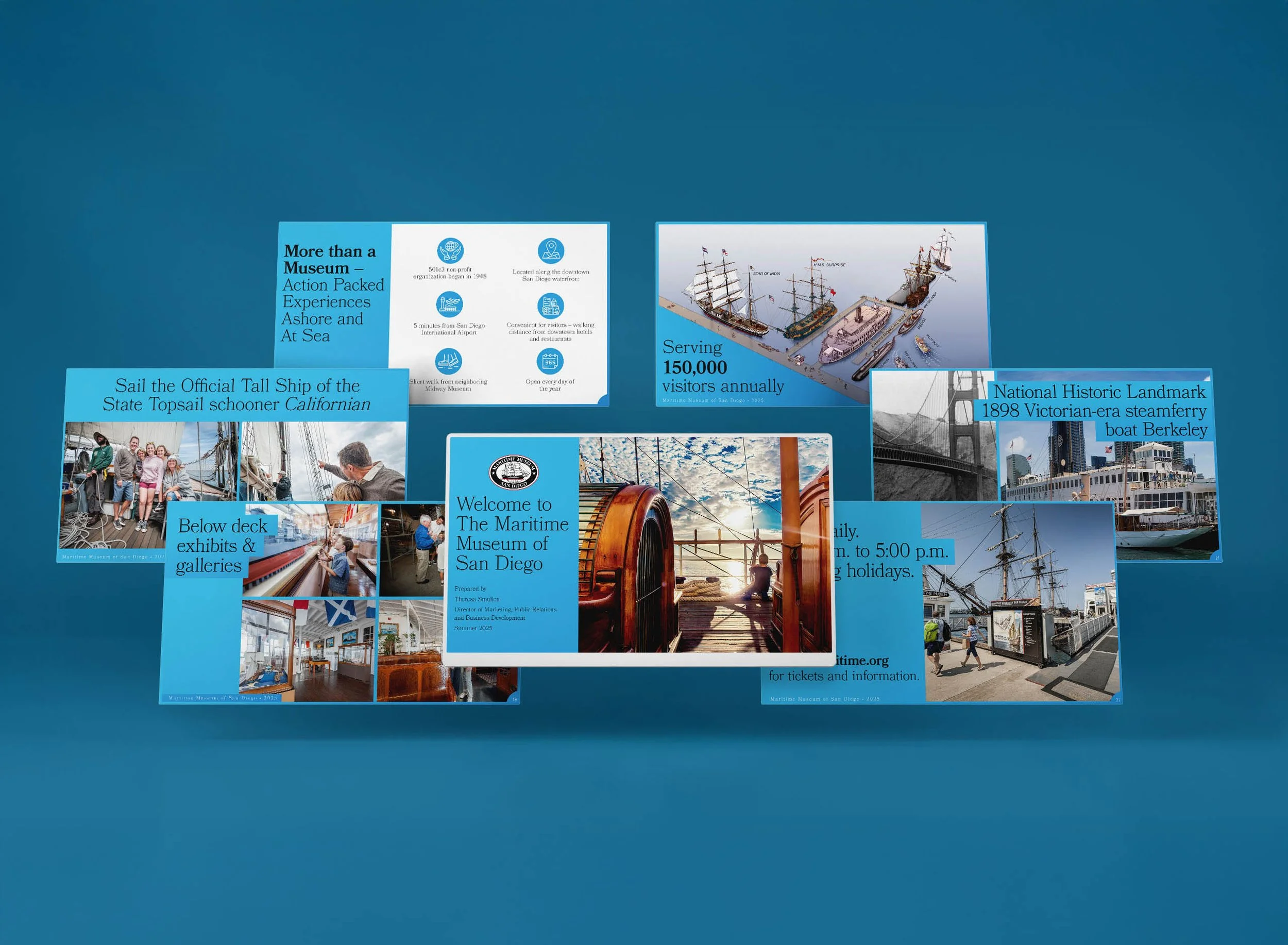 During my time at the Maritime Museum of San Diego, I have designed a wide range of promotional materials and collateral that communicate the museum's offerings to the public. My work in this area includes crafting visually appealing brochures, posters, banners and promotional videos, showcasing the museum's collections, exhibits, and events to attract potential visitors.